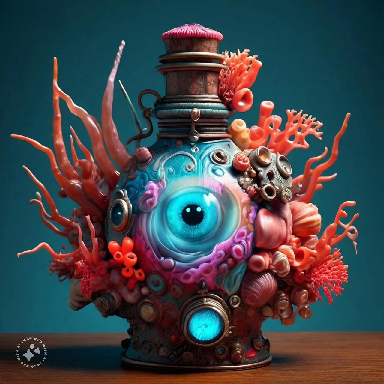 Meta is coming out with a new ai model— Muse Spark. As we await the takeover of humanity by computer superintelligence (hello Hal), here are a few ceramic undersea mutated bell jar experiments from the Meta ai image generator. Im not sure what might be growing in these things but they all feel pretty nefarious to me.